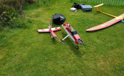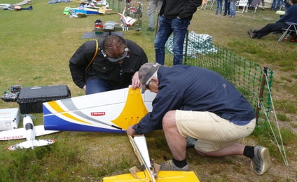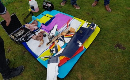 Foto's/Film van Hanneke, Dick, Paul en Rein, 5 mei 2018 onderhoud vliegveld, vele handen maken licht werk, en voldoende tijd over om nog te kunnen vliegen.