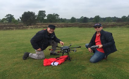 Foto's met Mavic Pro vrijdag 13-15 april 2018 en de grasmaaier doet het weer perfect, Paul en Dick zijn weer druk bezig.